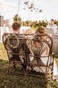 Diese Traubank aus dunklem Rattan kann perfekt zur freien Trauung verwendet werden. Die dunkele Bank ist für diejenigen perfekt, die sich Ihren Platz teilen möchten.